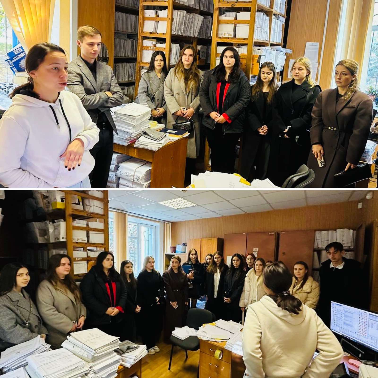 Після чого, помічник голови суду Федорова Аліна, помічник заступника голови суду - Світлана Бачинська, а також консультант суду Дмитро Барбинягра провели здобувачам вищої освіти екскурсію приміщеннями суду та розповіли про роботу канцелярій суду.